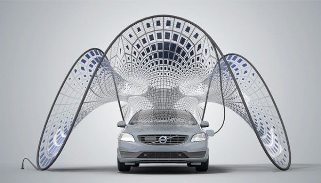 Al dan niet geinspireerd op de her eerder besproken V-Tent komt Volvo nu met ‘Pure-Tension’, een uitklapbaar zonnepaviljoen dat de elektrische auto kan opladen wanneer deze geparkeerd staat (WIRED). De Pure Tension tent zal worden gebruikt in de promotie van de hybride V60, een productieversie staat vooralsnog niet op de planning.